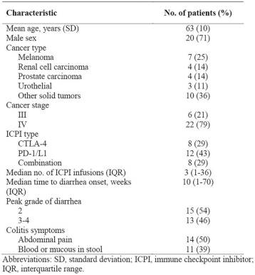 Table 1 (abstract P538). Patient clinical characteristics (n = 28)