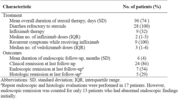 Table 3 (abstract P538). Treatment of colitis and outcomes (n = 28)